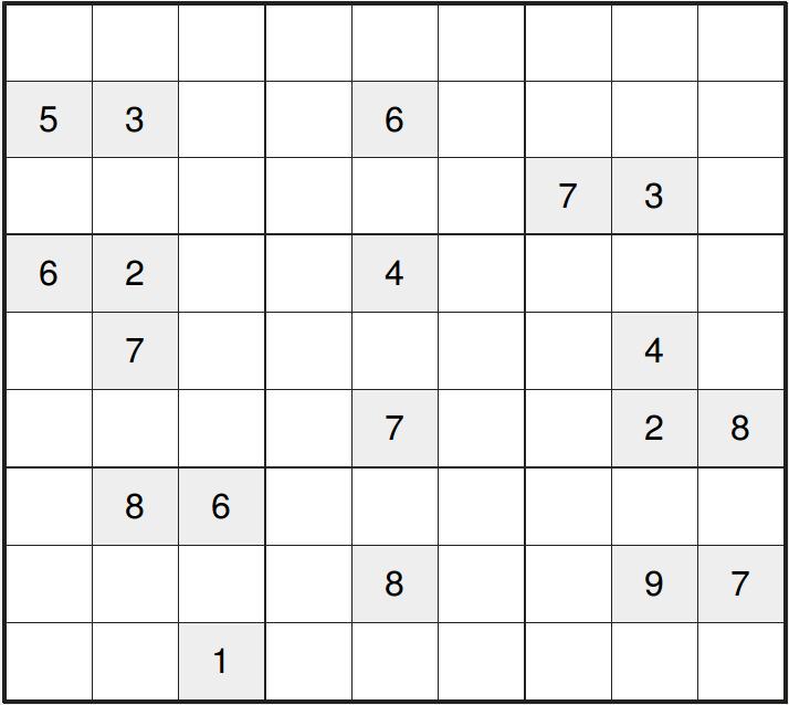 ۱ - در هر ردیف، ستون و زیرمجموعه ۳x۳ تمام اعداد از ۱ تا ۹ هر کدام یک با و فقط یک بار موجود باشند.